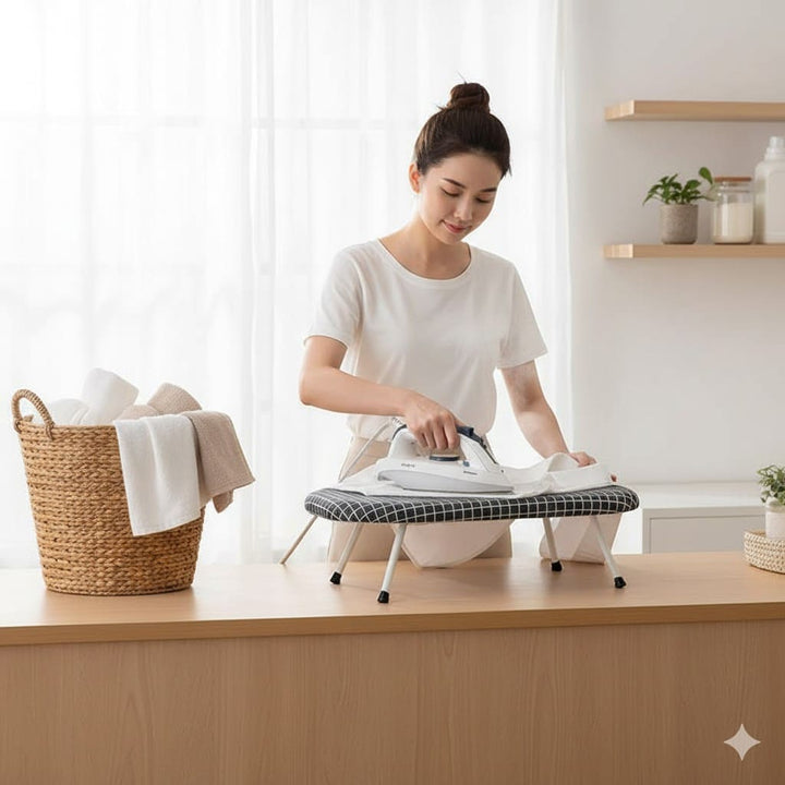 Iron your clothes effortlessly with this compact folding ironing board durable, space-saving, and perfect for everyday home use.