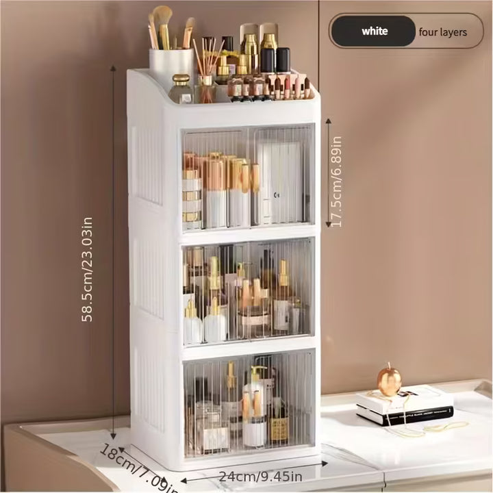 Keep your cosmetics and skincare organized with this foldable, tool-free makeup storage box compact, spacious, and ready to go anytime.